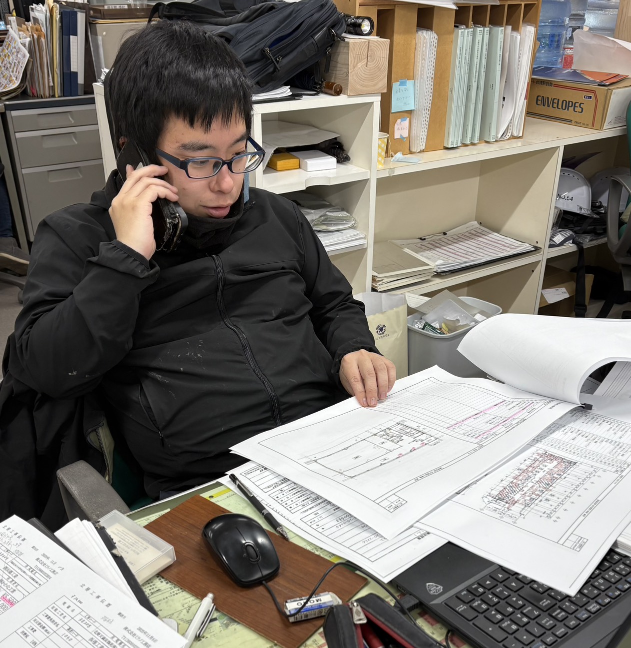 私はこの会社に施工管理士として入社し、主に施工図面の作成や材料の発注・搬入の管理などを担当しています。