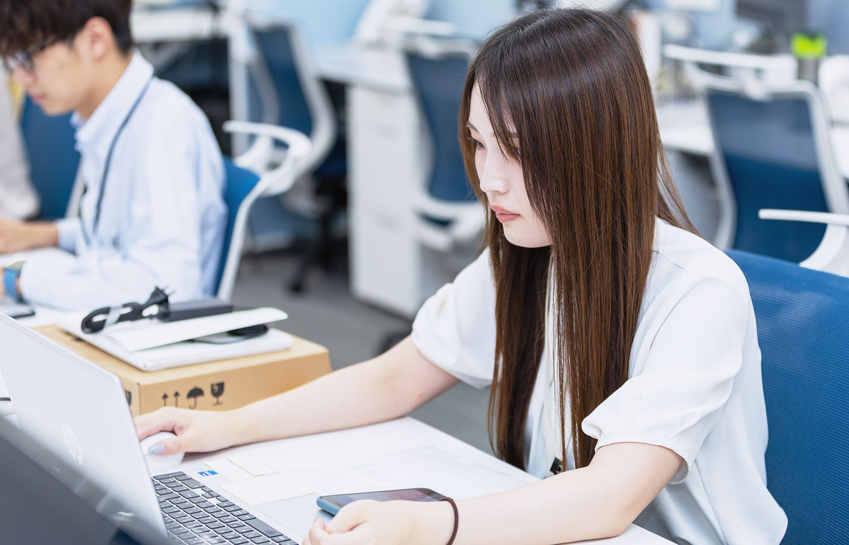 現在、先輩社員に同行しお客様との会話や関係性を見て、商品を売るための仕事ではなく、非常に楽しくやりがいのある仕事だと感じています。私自身まだまだ勉強中ですが、お客様がお困りの際に一番に思い出していただける存在になることを目標に日々頑張っています。また、型にはまらず自分らしく働くことが出来る環境で、今後求められる知識を身に着けられるため成長を感じられます!