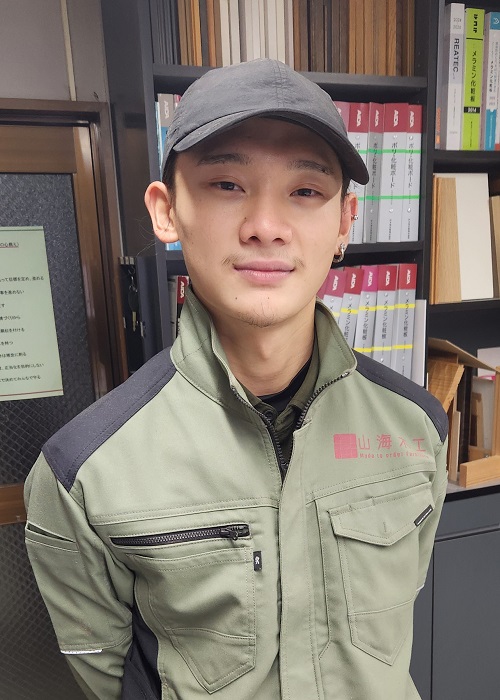 元々ものづくりが好きで大工などの木に関わる仕事をしたいと思い育ちました。そして学校の先輩からこの会社を紹介していただきインターンシップでお世話になり社員同士の仲の良さなどを決め手にこの会社に入社しました。