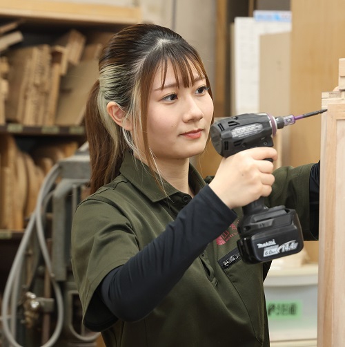 元々、手先を使って作業する事が好きで、中学生の時、授業で本棚を作ったことをきっかけに、家具職人になりたいと思い、入社しました。